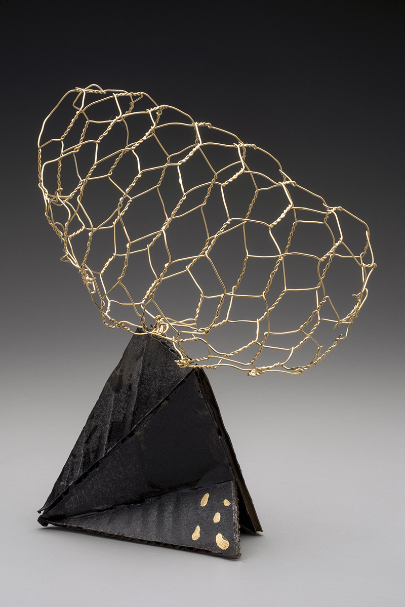 gold chicken wire, gold paint, cardboard