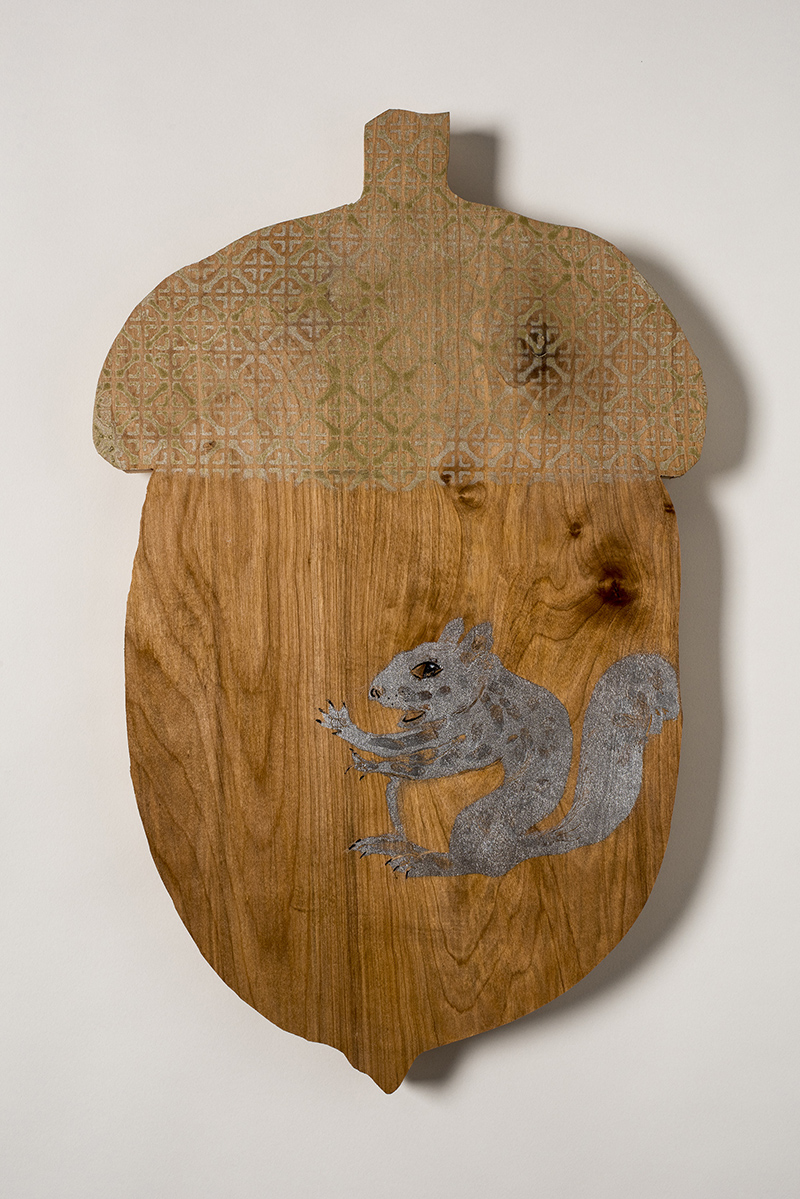 acorn shape with squirrel chasing Tory Burch