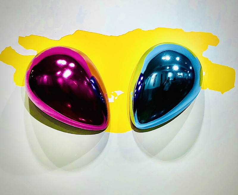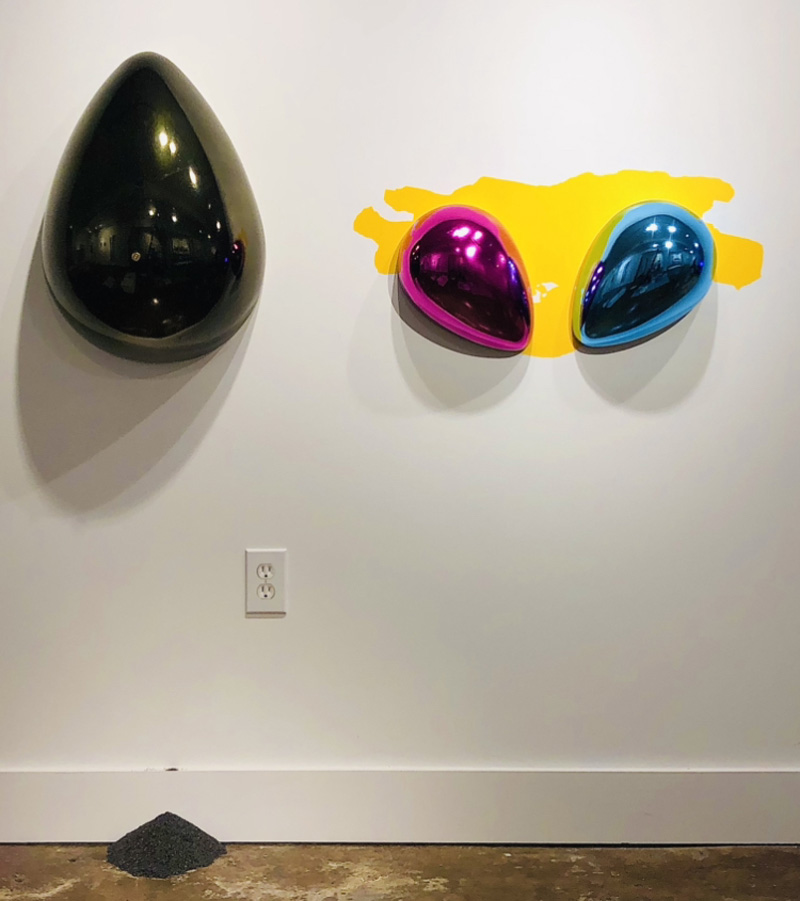 Side view of installation of WIN and Mother of Jeff at The MAC, Dallas, Texas